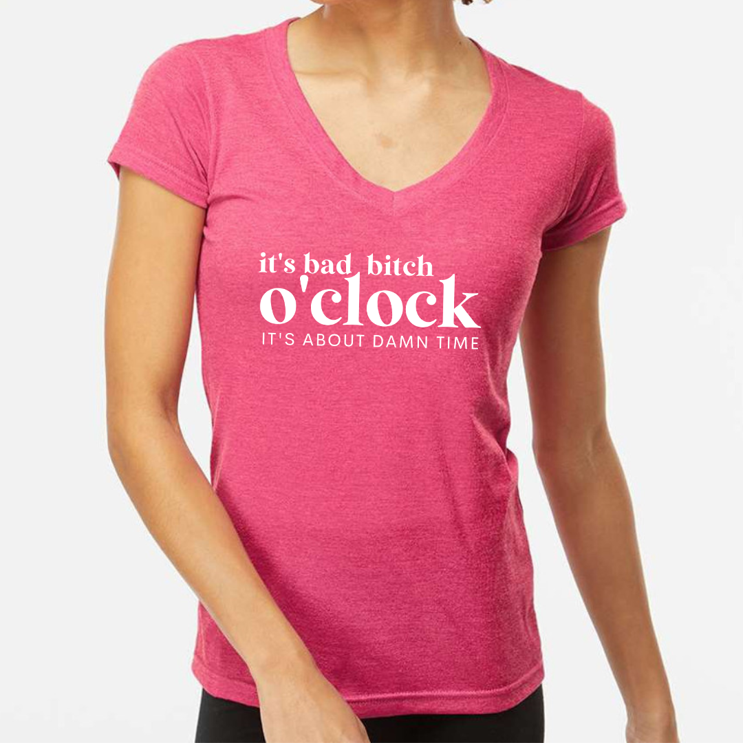 It's Bad Bitch o'Clock V neck Ladies Fit Tee